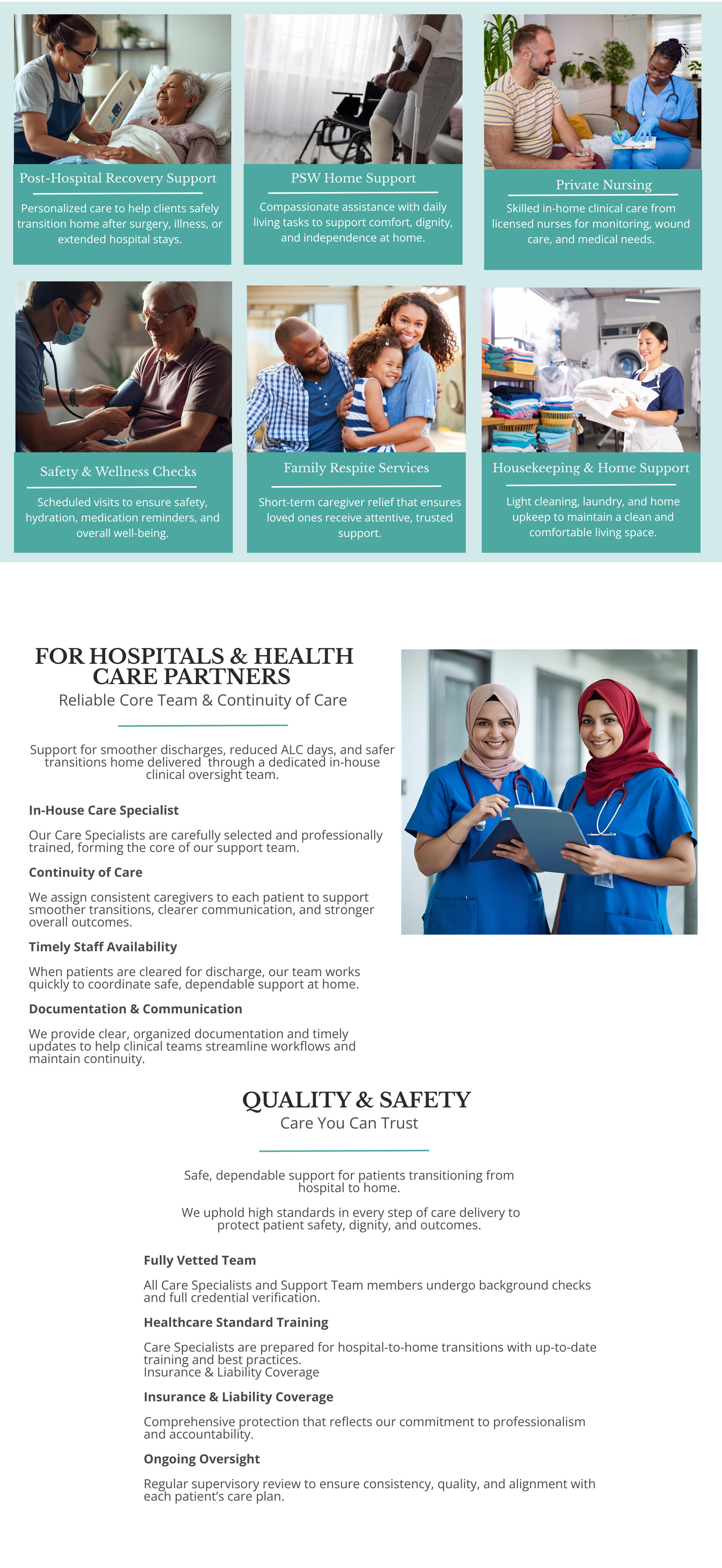 Our unified care team and dedicated support professionals, delivers consistent, compassionate, and clinically aligned service that respects the dignity, routines, and cultural needs of each individual. With a strong focus on quality, oversight, and continuity, Discharge Ready offers both transitional care and ongoing home support designed to maintain stability well beyond the initial discharge.